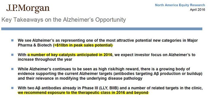 - A viable AD treatment could generate around $10BN in annual sales