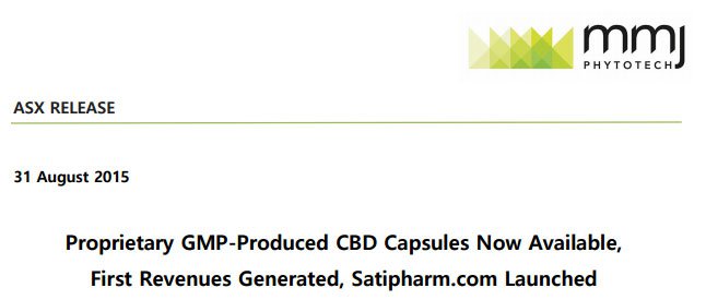 MMJ has already kick-started sales of its CBD capsules via Swiss subsidiary Satipharm.